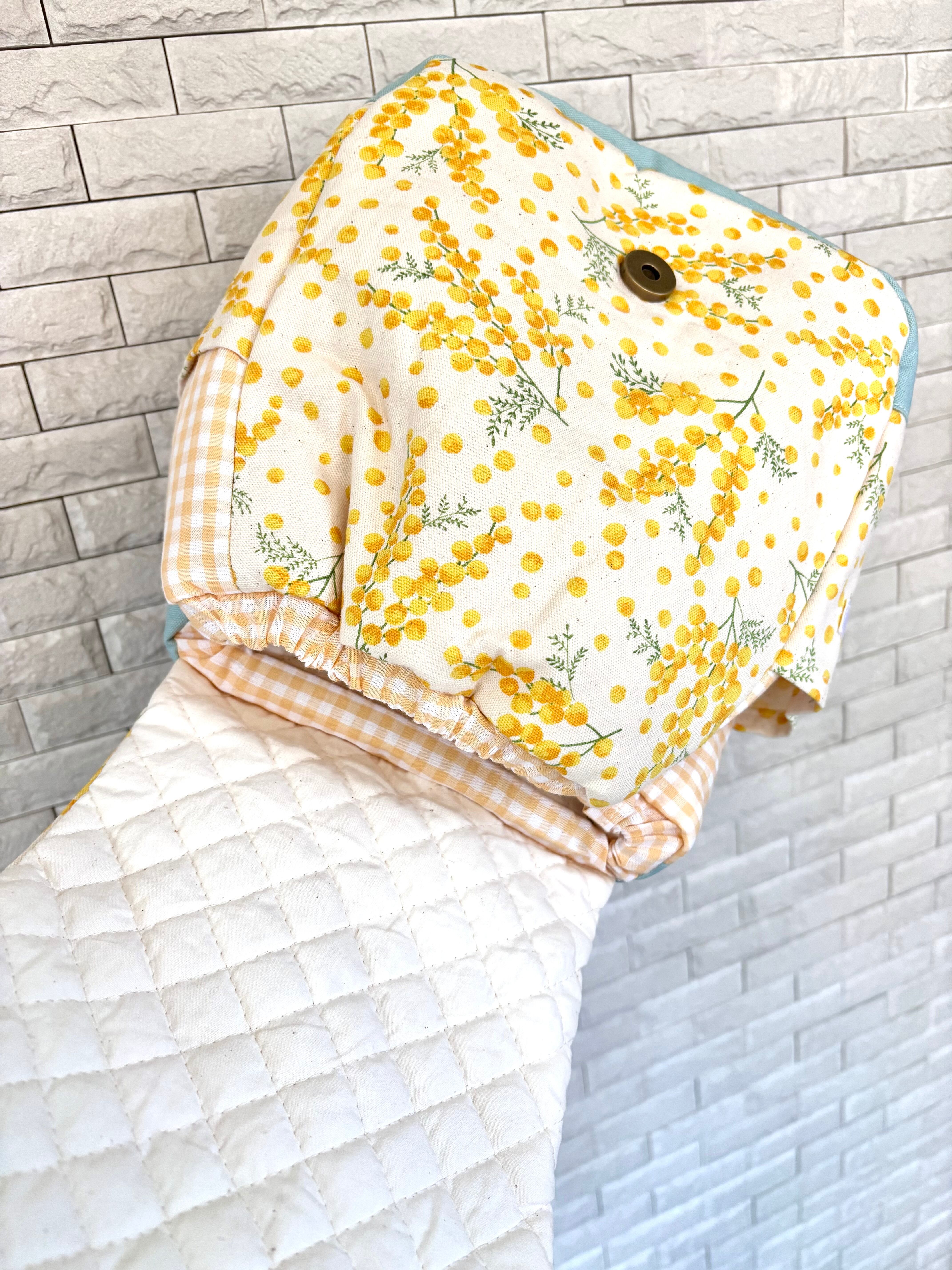 イエローが映えるミモザ柄と、